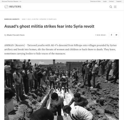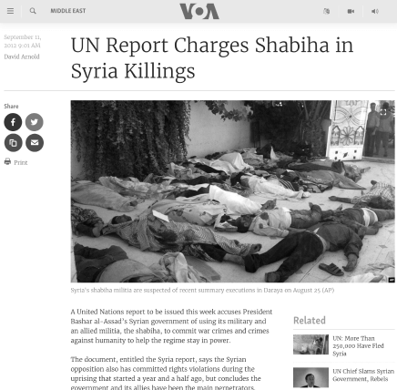 Throughout 2011 and 2012 witnesses and survivors consistently reported the presence of “Shabbiha” -as they called them- at various massacres across the country.